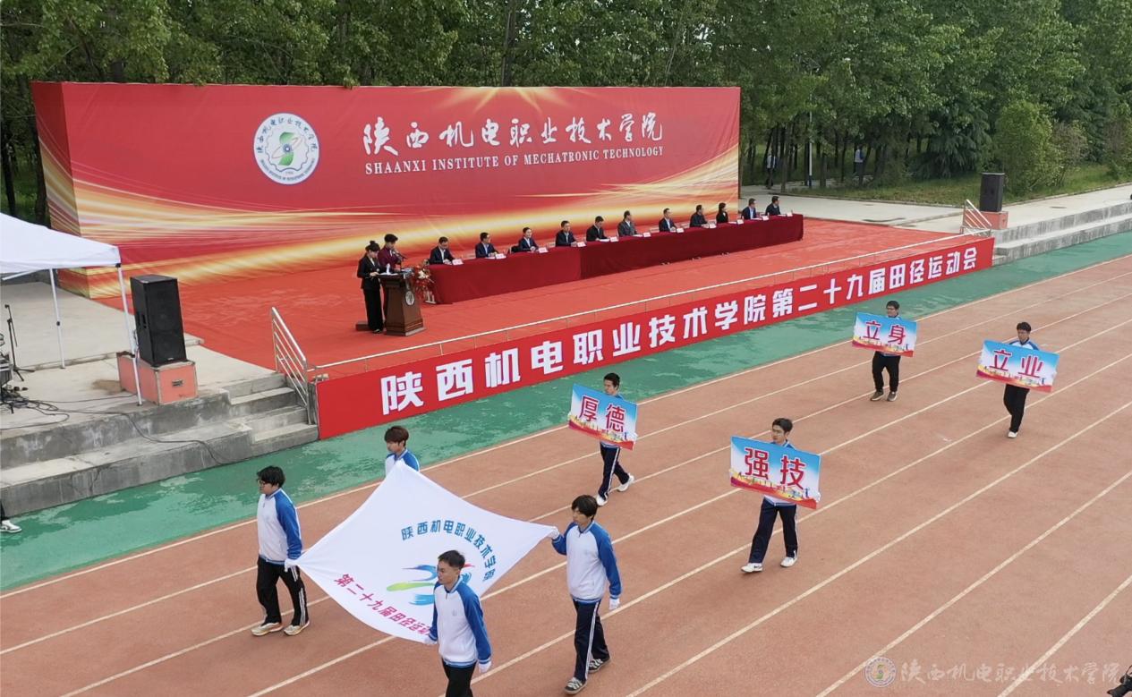 第29届田径运动会在慷慨激昂的运动员进行曲中拉开帷幕。国旗方阵、校旗方阵、彩旗方阵、裁判员代表队、运动员代表队迈着矫健的步伐依次步入运动场接受检阅。