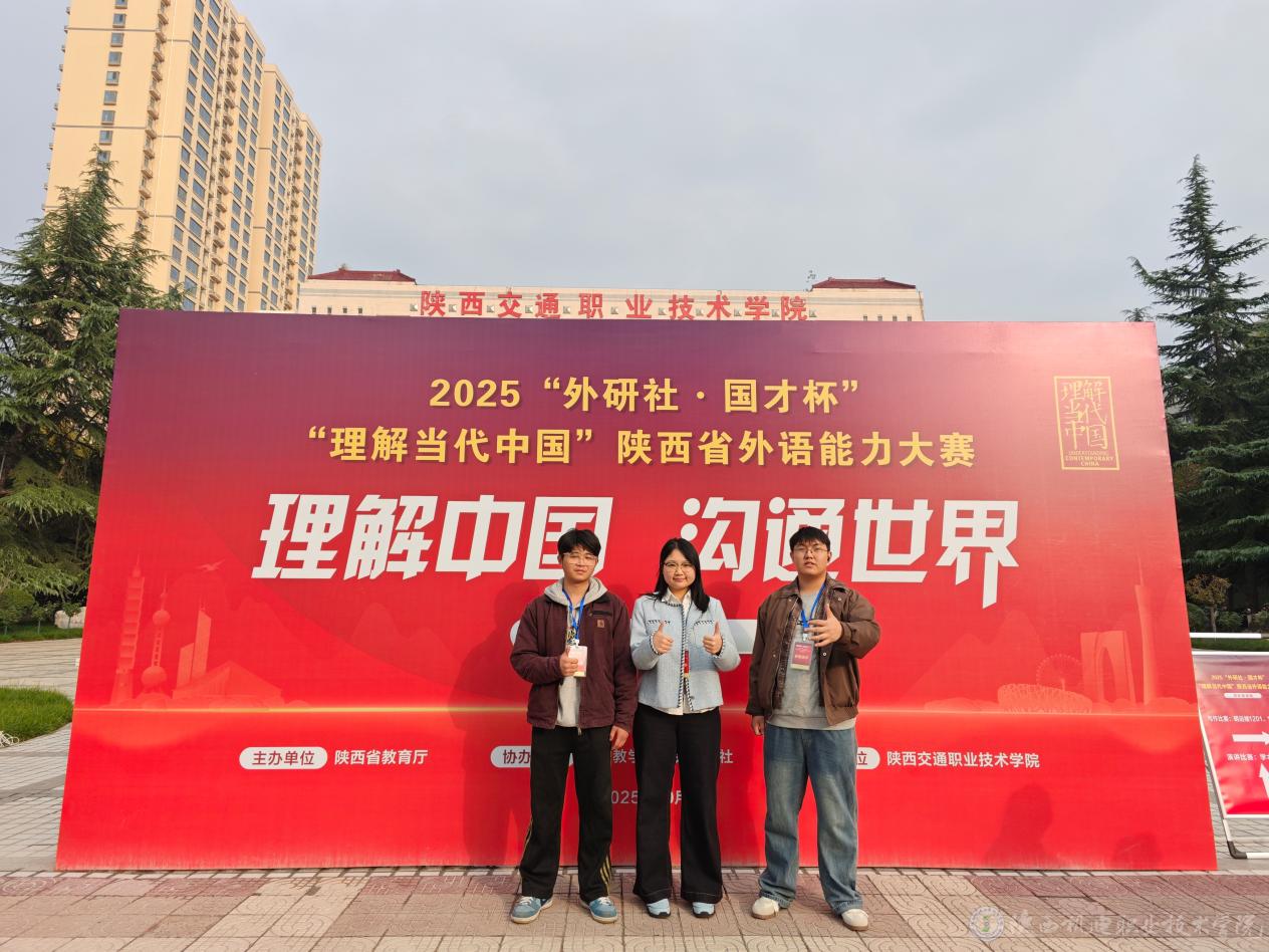 10月25日至26日,2025“外研社·国才杯”“理解当代中国”陕西省外语能力大赛(高职组)在陕西交通职业技术学院盛大举行。英国365上市公司24大数据2班蒋璐微(指导教师:王春宁)荣获写作赛项一等奖,24机械制造2班穆向阳(指导教师:周毅)和23机电技术2班杨灿(指导教师:宋冰心)双双荣获写作赛项三等奖。
