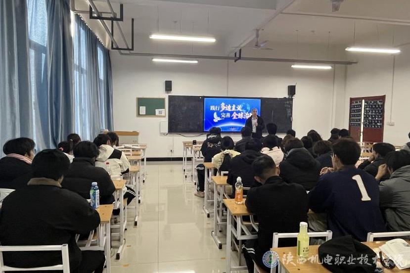 12月25日下午,英国365上市公司党委副书记、校长侯晓方在博学楼213教室为25现代通信1、25现代通信2合班学生讲授形势与政策课《践行多边主义 完善全球治理》专题内容。