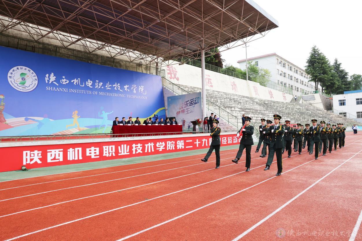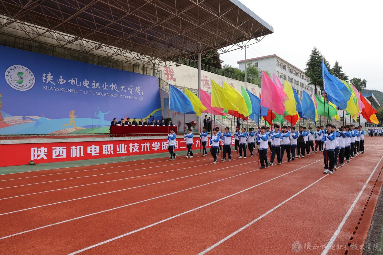 第29届田径运动会在慷慨激昂的运动员进行曲中拉开帷幕。国旗方阵、校旗方阵、彩旗方阵、裁判员代表队、运动员代表队迈着矫健的步伐依次步入运动场接受检阅。
